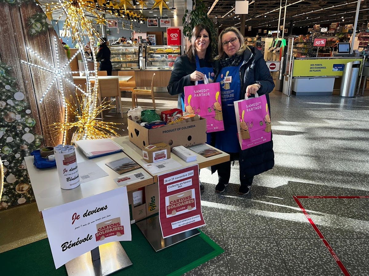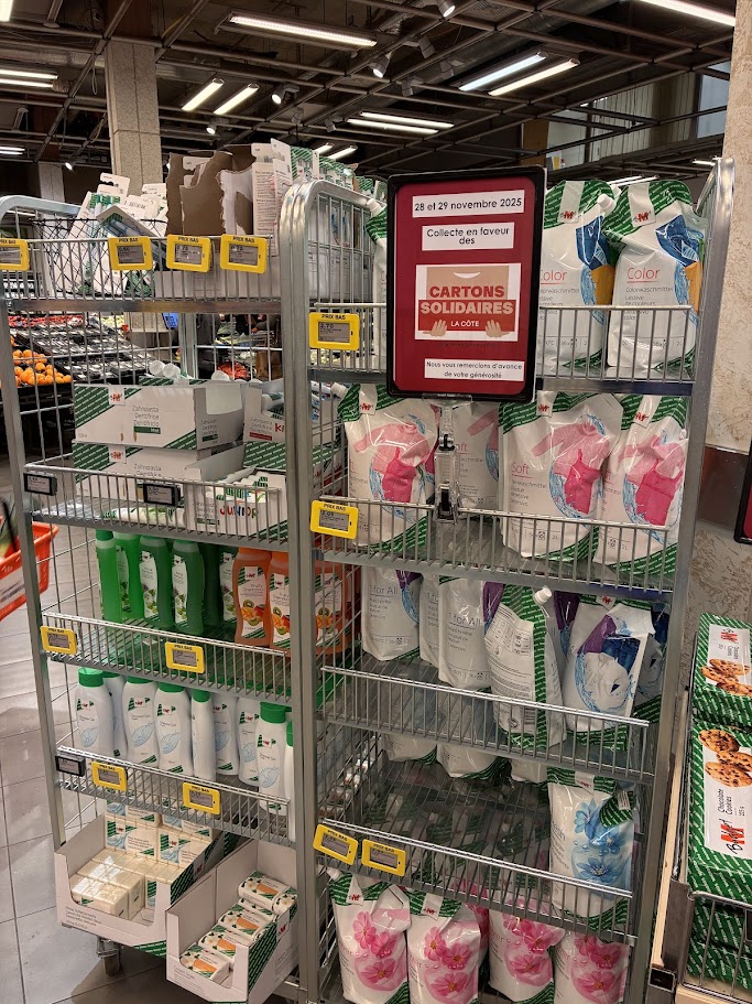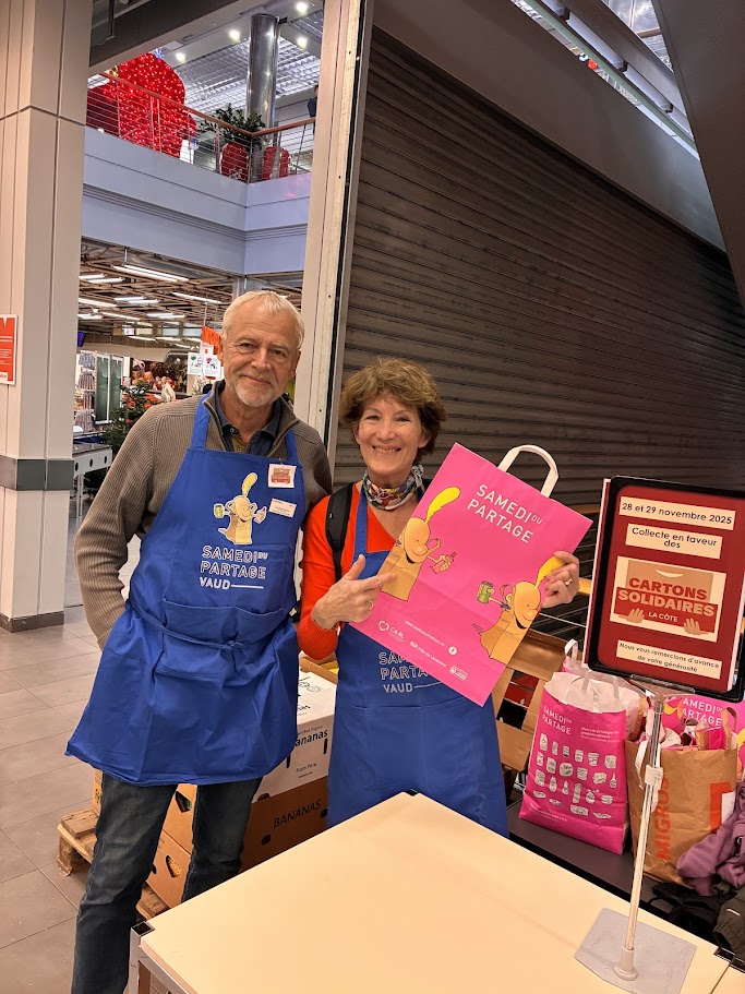Nous étions présent dans 4 magasins entre Nyon et Gland le 28 et 29 Novembre 2025. Plus de 20 tonnes récoltées grâce à votre générosité et énormément de cartons déplacés!